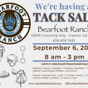 Welcome to the Bearfoot Ranch Tack Sale Join us for a heartwarming event that not only offers incredible deals but also supports a truly compassionate cause. At Bearfoot Ranch, every donation and purchase makes a profound difference in the lives of rescued horses and children with special needs. Event Details Mark your calendars for our upcoming Tack Sale on September 6, ...